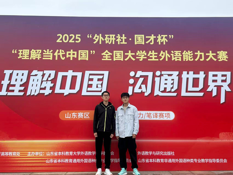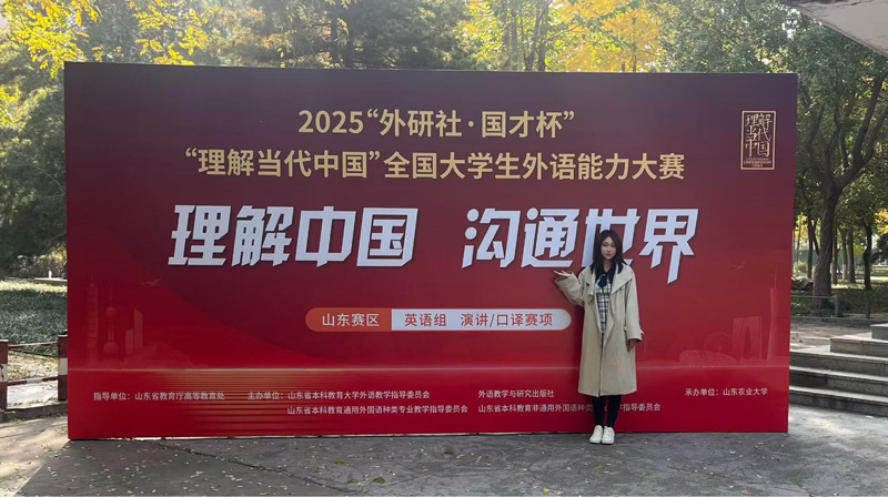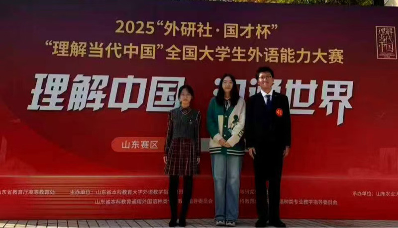 近日,2025“外研社・国才杯” “理解当代中国”全国大学生外语能力大赛山东省省赛圆满落幕。校区学子凭借扎实的英语功底、敏锐的思辨能力与出色的综合素养,在多个赛项中脱颖而出,一举收获金奖4项,银奖5项,铜奖4项,优胜奖1项的好成绩,彰显校区外语教学与人才培养的卓越成效。